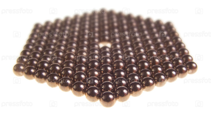 Шестиугольник из маленьких металлических шариков на белом фоне