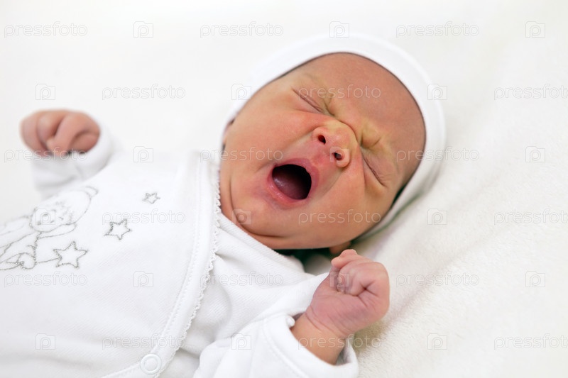 Зевающий младенец на белом фоне