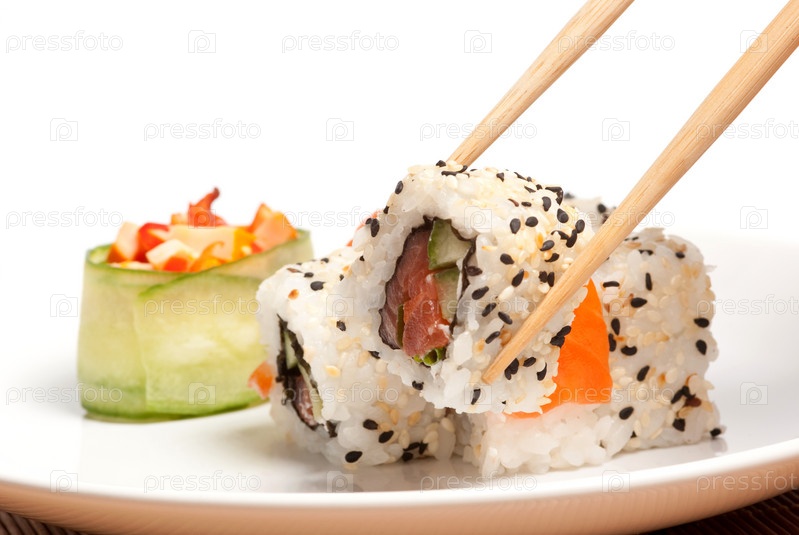 Суши роллы и палочки для еды