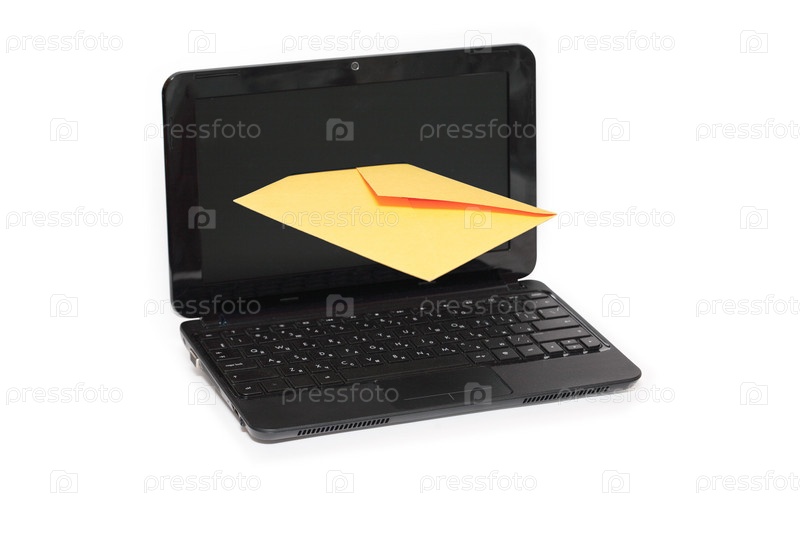 Желтый конверт торчит из экрана ноутбука