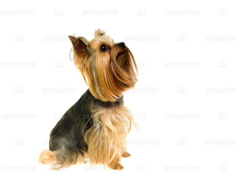 Йоркширский терьер сидит и смотрит наверх