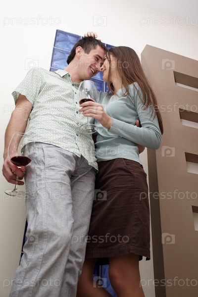 Двое молодых людей с бокалами вина