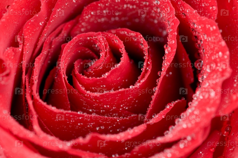 Макрофото красной розы с каплями воды