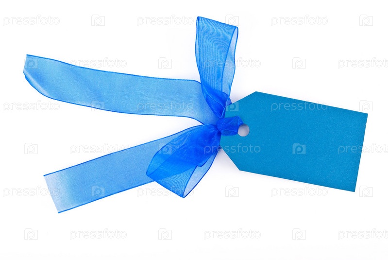 Голубой ярлычок с лентой на белом фоне