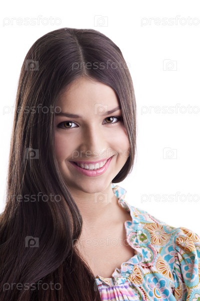 Портрет молодой симпатичной девушки в народном костюме на белом фоне