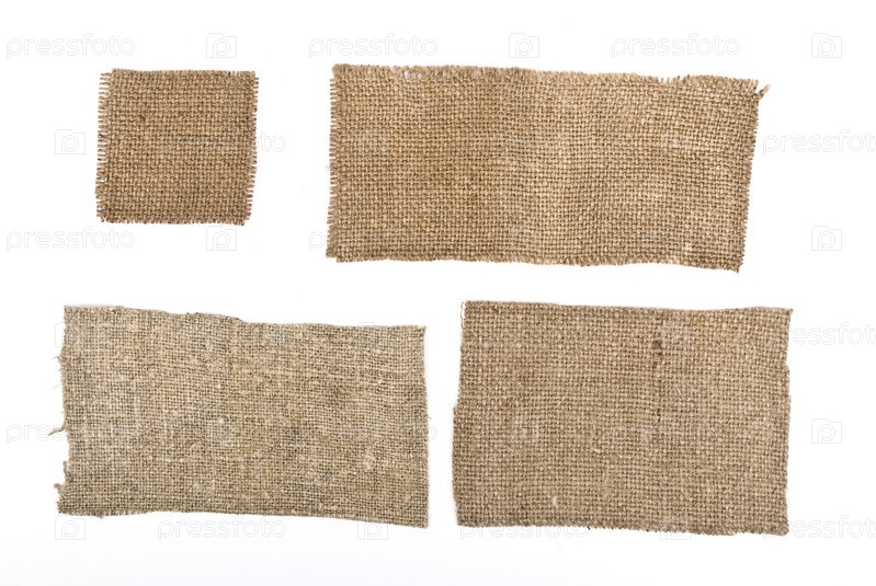 Кусочки мешковины крупным планом на белом фоне
