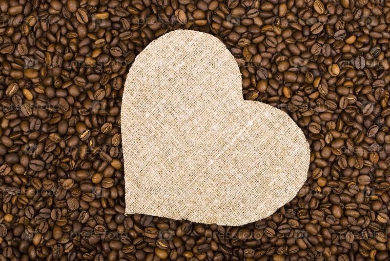 Льняное сердце на фоне из кофейных зерен