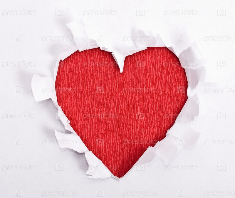 Красное сердце из рваной бумаги