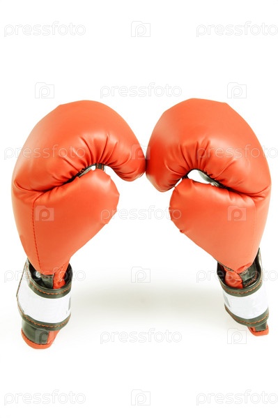 Красные боксерские перчатки на белом фоне