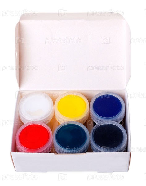 Многоцветные краски в контейнерах с крышками (изолированные)