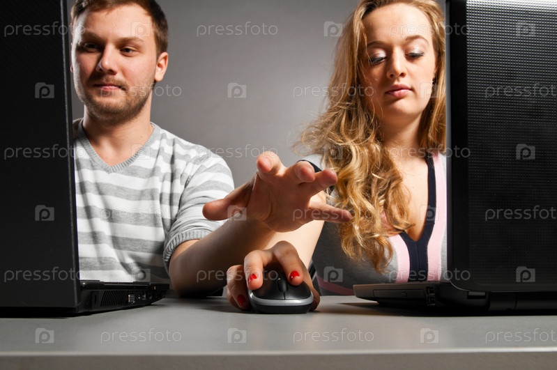 Мужчина и женщина за компьютерами