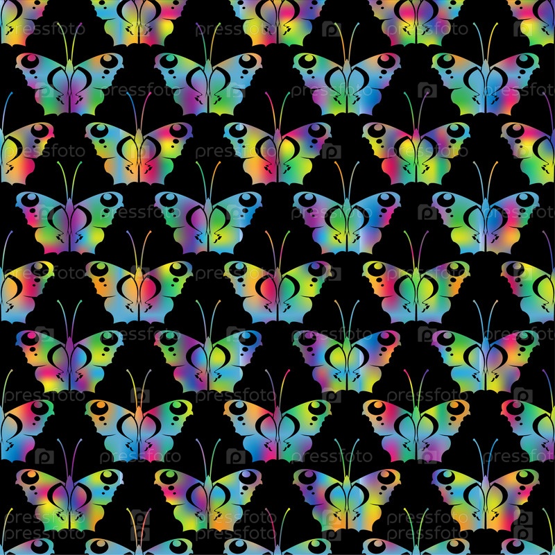 Много бабочек на черном фоне
