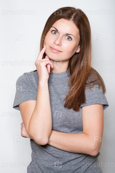 Красивая молодая женщина на белом фоне