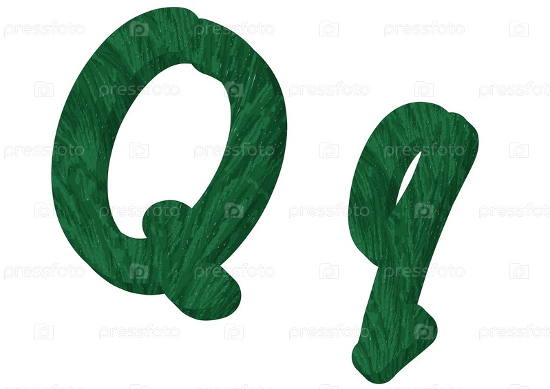 Декоративная образцовая объемная прописная и строчная латинская буква Q