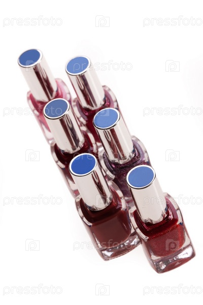 Бутылочки с лаком для ногтей на белом фоне