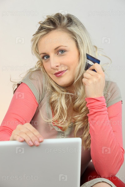 Молодая женщина делает покупки в интернете