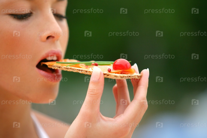 Женщина ест полезную закуску
