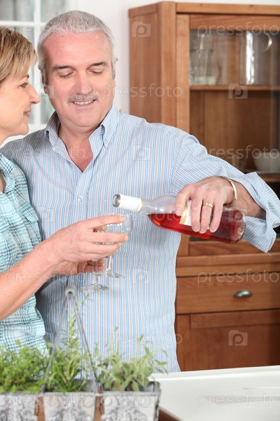 Мужчина наливает вино