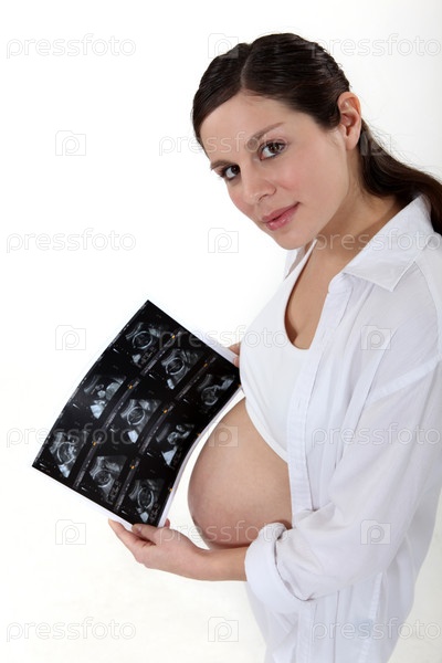 Беременная женщина с рентгеновским снимком