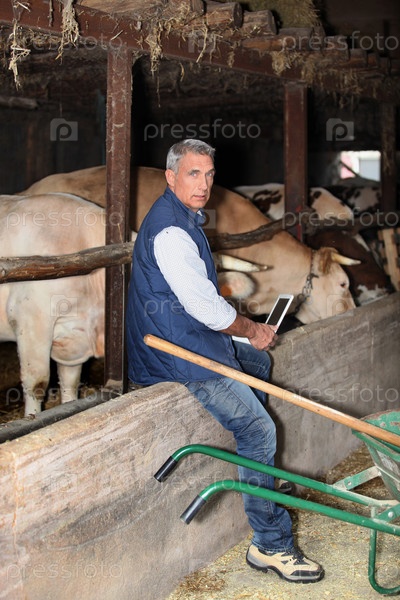Фермер в коровнике
