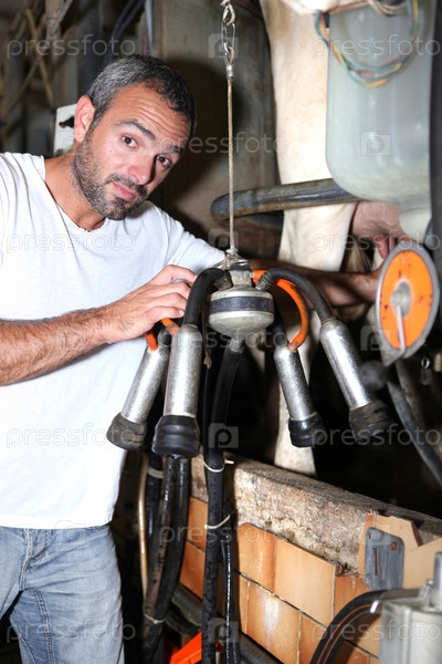 Фермер в коровнике