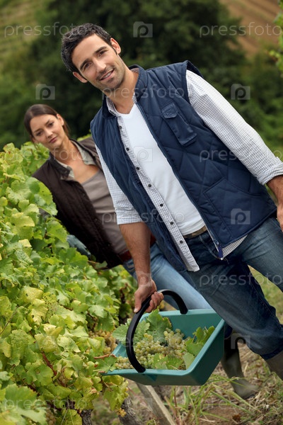 Пара, работающая в винограднике