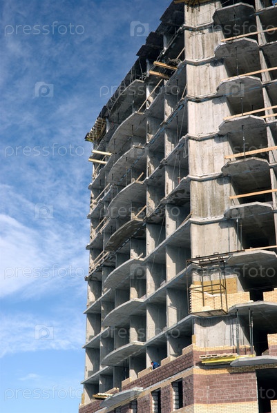 Строительство жилого дома на фоне голубого неба