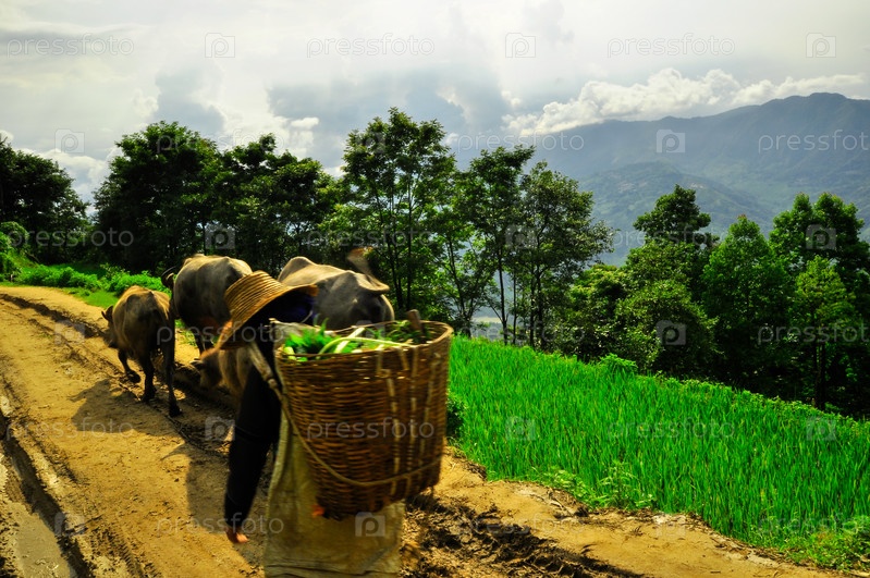 Южный Китай, Юньнань. Рисовые террасы в горах Юго-Восточного Китая, фермеры