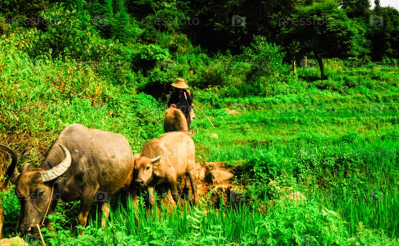 Южный Китай, Юньнань. Рисовые террасы в горах Юго-Восточного Китая, фермеры