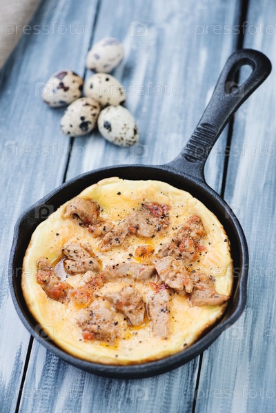 Омлет из перепелиных яиц с жареной свининой