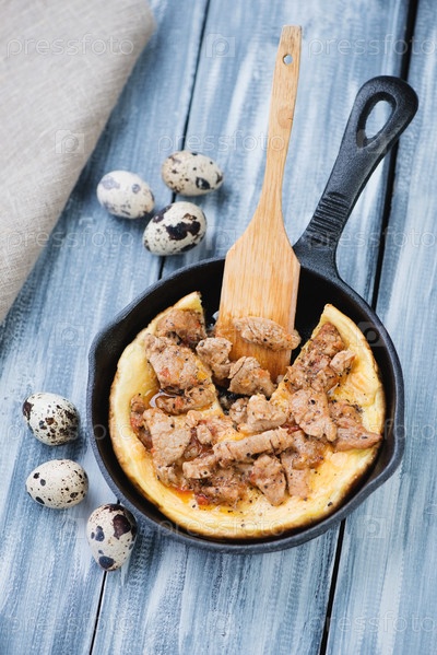 Омлет из перепелиных яиц с жареной свининой