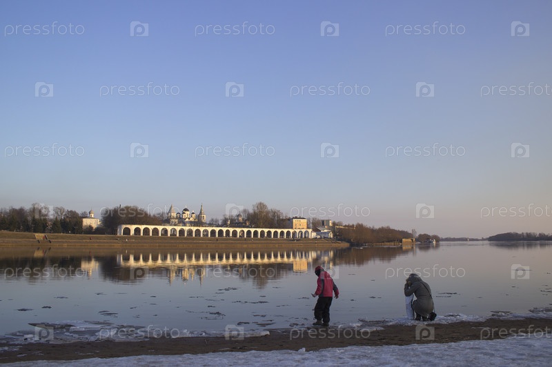 Конец ледохода на Волхове в центре Новгорода