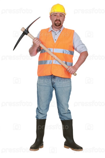 Каменщик держит кирку