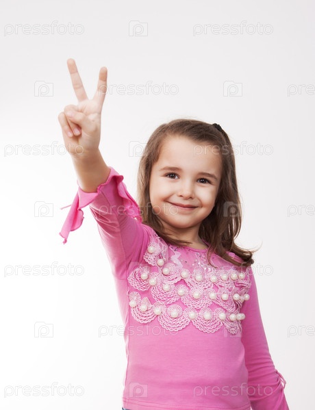 Девочка показывает знак победы