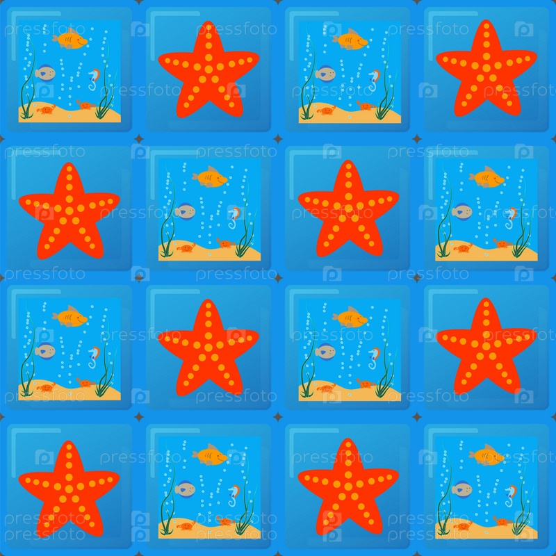 Морская звезда и море на синем фоне