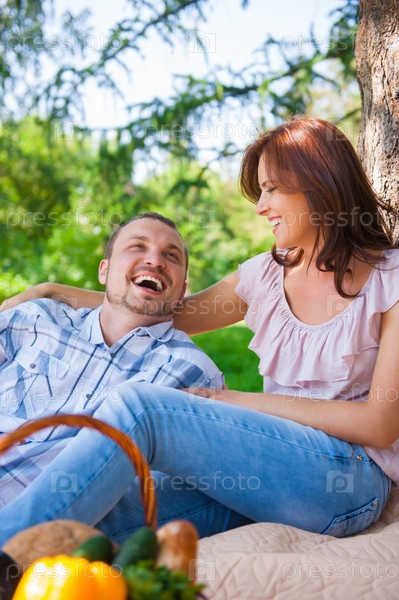 Пара на пикнике в саду