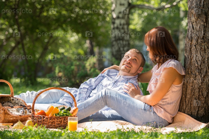 Пара отдыхает под деревом
