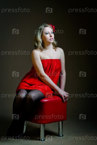 Молодая девушка в красном платье на темном фоне