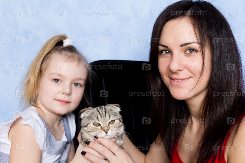 Мать, дочь и серый котенок