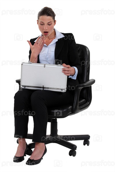 Женщина открывает кейс