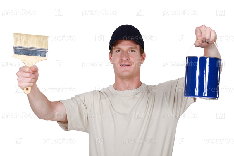Маляр с банкой краски и кистью
