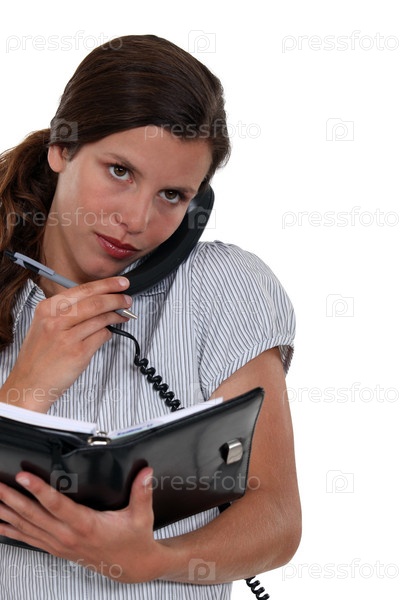 Администратор с телефоном и записной книжкой