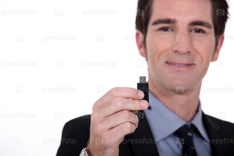 Мужчина с флэш-накопителем