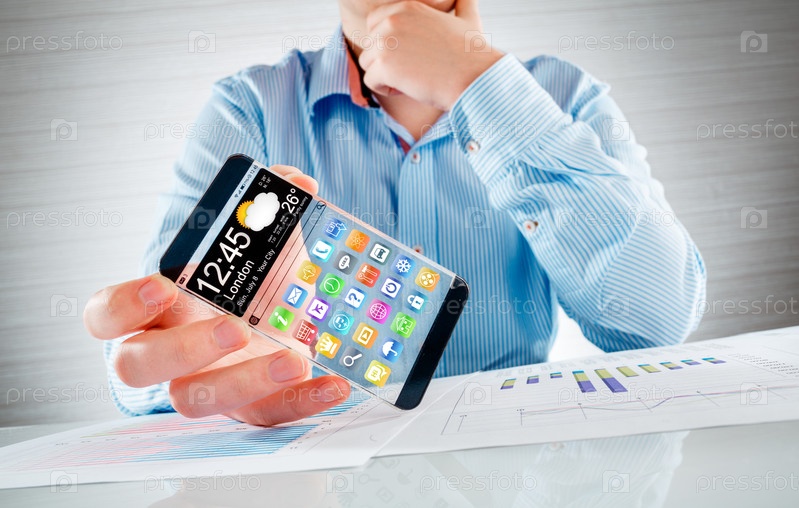 Прозрачный смартфон в руке