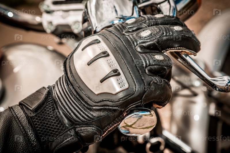 Рука в перчатке на ручке мотоцикла