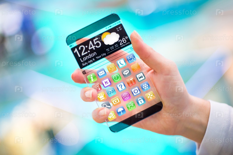 Смартфон с прозрачным экраном в руке