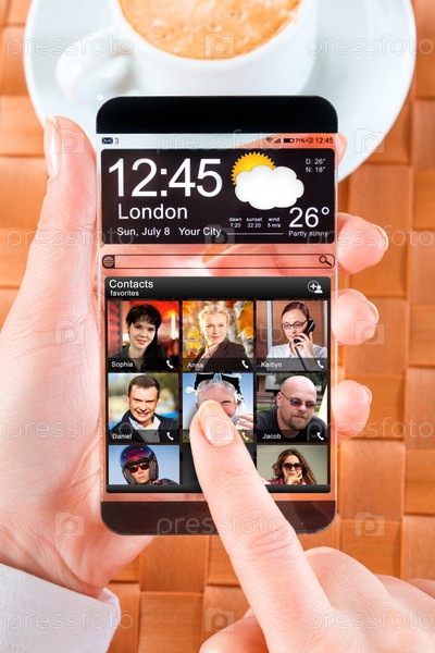 Смартфон с прозрачным экраном в руке