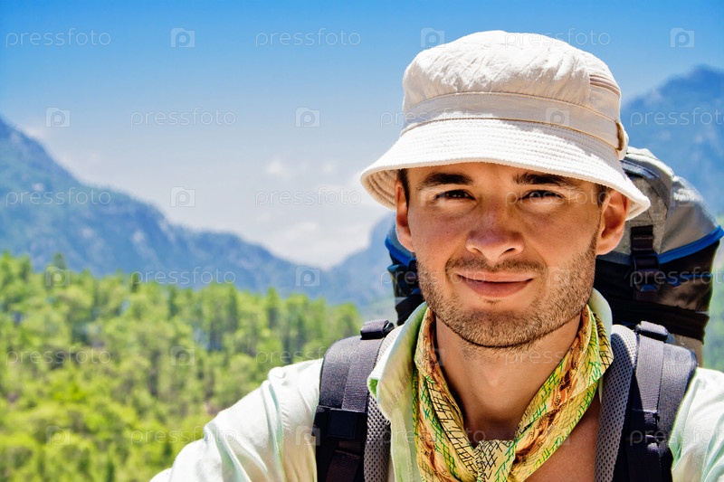 Портрет туриста, стоящего на горе