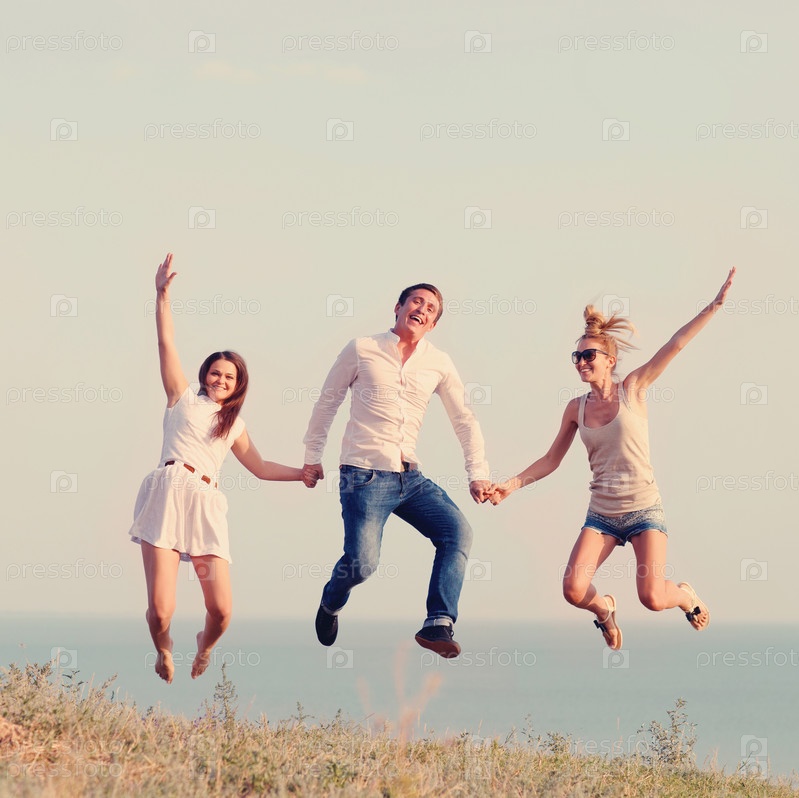 Счастливые друзья на пляже