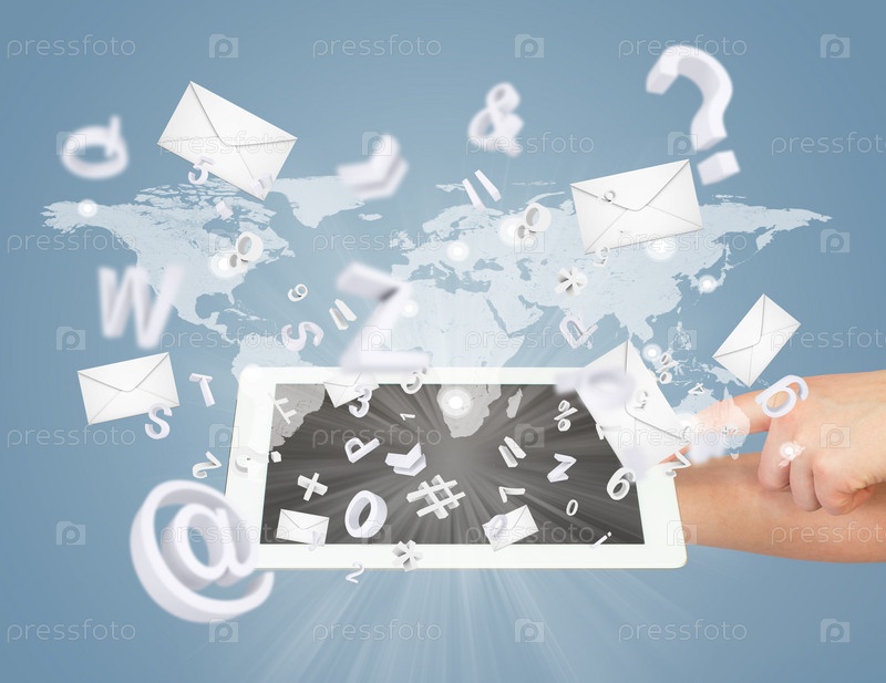 Рука, планшет, конверты
